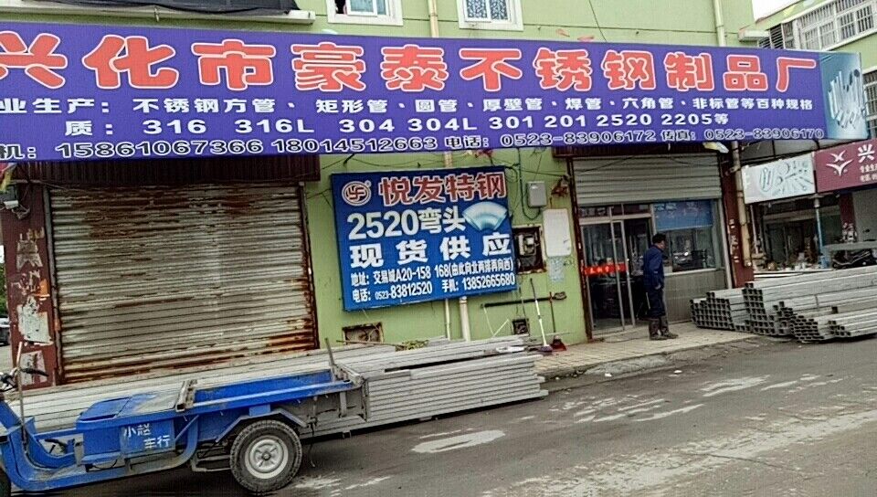興化市豪泰不銹鋼制品廠是一家專業(yè)生產(chǎn)不銹鋼材質(zhì)201、304、304L、316L、321、2520、904L等材質(zhì)為主導產(chǎn)品,規(guī)格齊全,備有大量現(xiàn)貨等,方管,矩形管,厚壁管。公司將一如既往的加強新老客戶真誠合作,我們從一米做起,盡量滿足客戶的需求。興化市豪泰不銹鋼制品廠位于江蘇省興化市戴南雙沐工業(yè)園區(qū),電話:0523-83906172 熱忱歡迎廣大新老客戶蒞臨指導,致電垂詢!