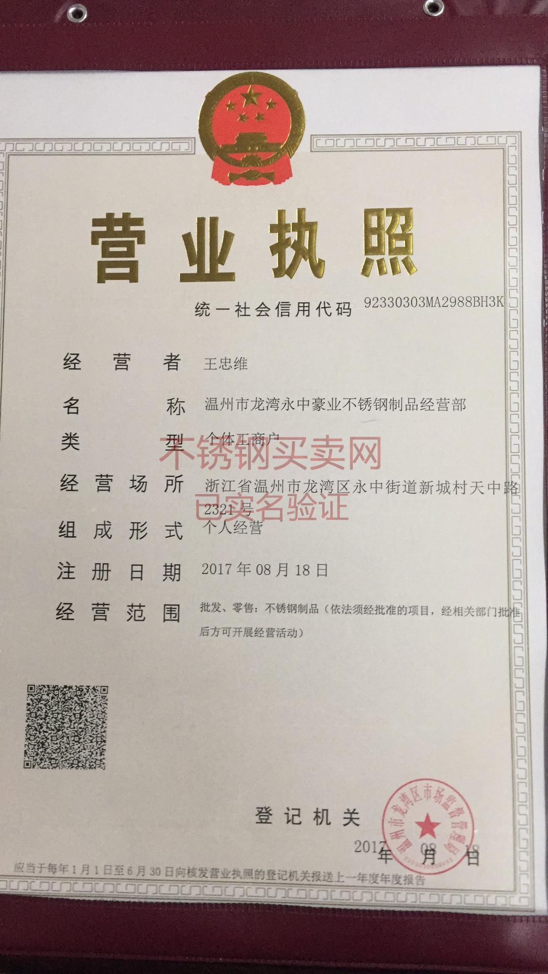 公司簡稱: 溫州豪業 營業執照: