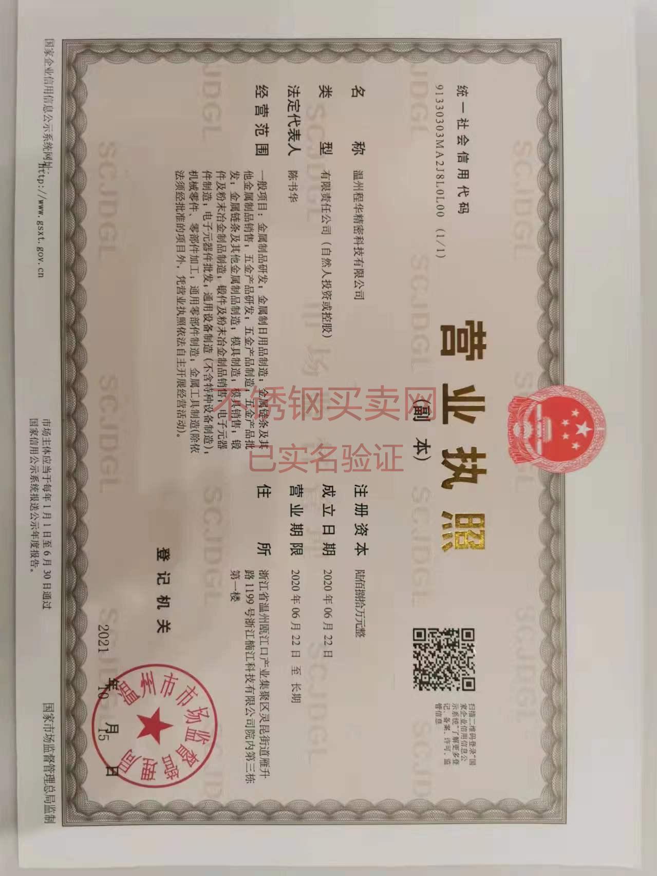 公司簡稱: 程華鋼業 營業執照: