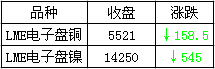 LME電子盤銅:5521跌158.5