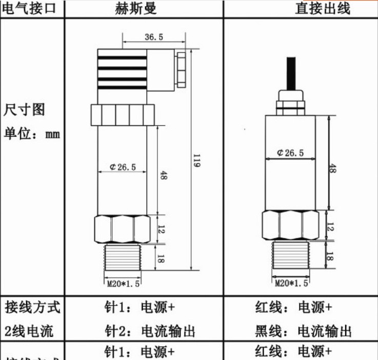 壓力連接:M20×1.5,其它螺紋可依據客戶要求設計