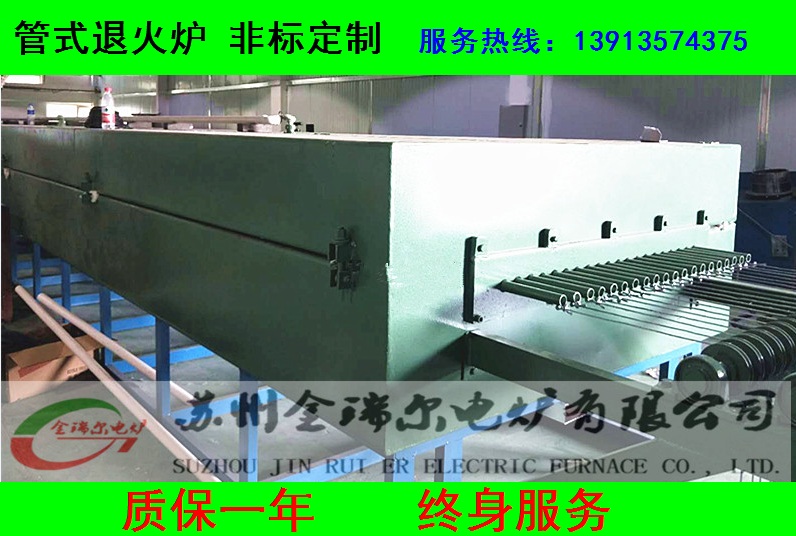 不銹鋼管光亮退火爐加熱采用四區控溫采用硅碳棒或螺旋式電阻絲作發熱體,加熱溫度可達1150,管采用耐高溫不銹鋼310S制作,沿加熱爐長度方向單層布置。退火管材從爐心管內通過并加熱,氨分解氣氛同時送入爐心管內。爐體為分體式結構,便于維修爐體密封性好,熱損失少,保溫好。