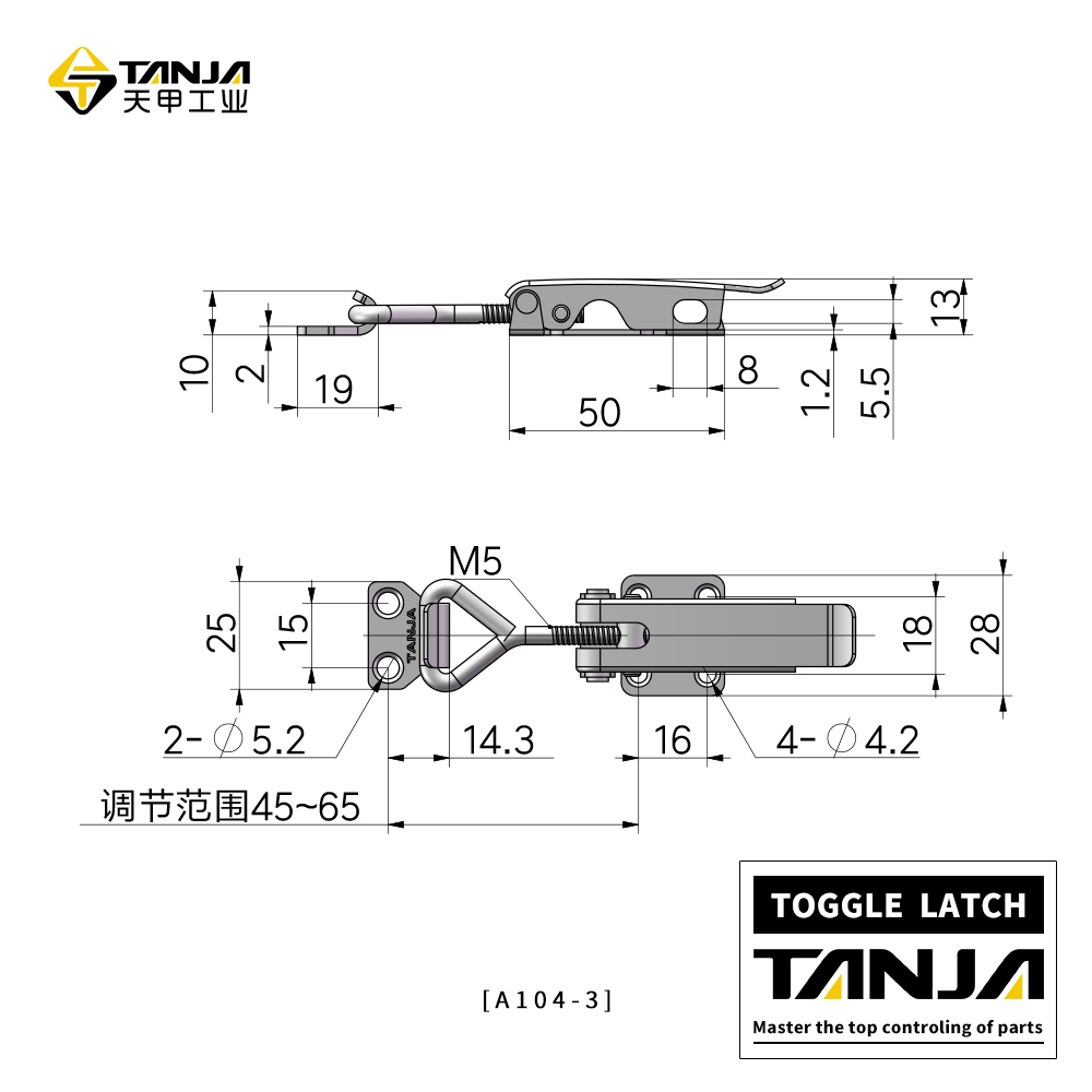 萊州市天甲五金公司專業致力于工業五金產品的設計、研發、生產和銷售,目前產品主要有搭扣(又名箱扣、鎖扣,普通搭扣,可調搭扣,自鎖搭扣,減震搭扣,橡膠搭扣等),鉸鏈(又名合頁,有平開鉸鏈,鋅合金鉸鏈),夾具等。產品適用于各種工業領域,尤其在食品、廚具、辦公家具、健身器材和醫療機械等領域已被廣泛應用。目前公司產品種類達3000余種,已與國內外6000余家工廠建立了長期的合作關系,產品遠銷歐洲、東南亞等45個國家。