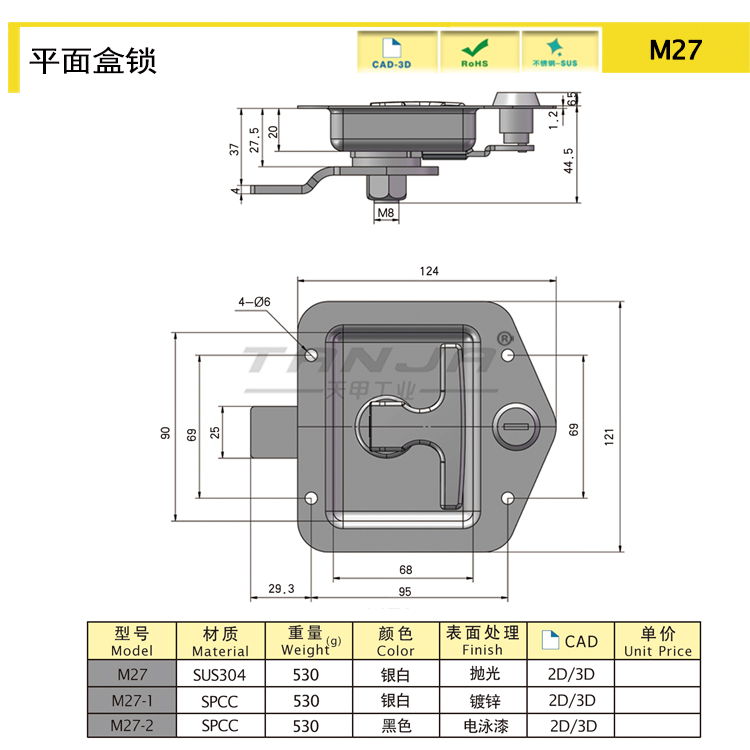 供應(yīng)天地 M27平面盒鎖_不銹鋼車(chē)廂門(mén)鎖駕駛艙不銹鋼盒鎖半掛車(chē)工具箱鎖 |