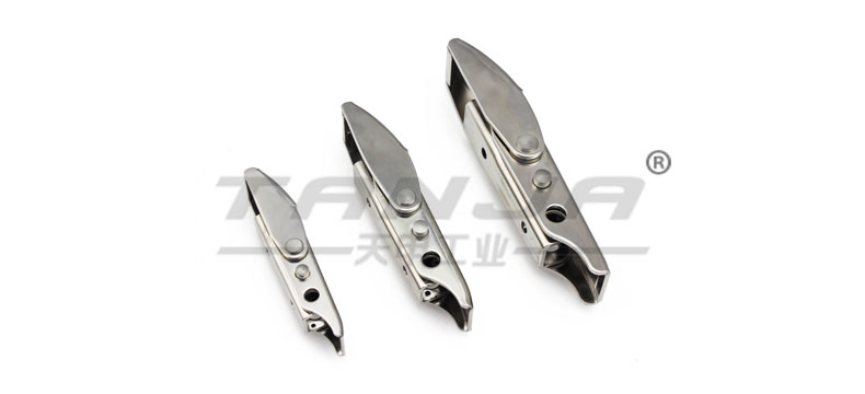 萊州市天甲五金公司專業致力于工業五金產品的設計、研發、生產和銷售,目前產品主要有搭扣(又名箱扣、鎖扣,普通搭扣,可調搭扣,自鎖搭扣,減震搭扣,橡膠搭扣等),鉸鏈(又名合頁,有平開鉸鏈,鋅合金鉸鏈),夾具等。產品適用于各種工業領域,尤其在食品、廚具、辦公家具、健身器材和醫療機械等領域已被廣泛應用。目前公司產品種類達3000余種,已與國內外6000余家工廠建立了長期的合作關系,產品遠銷歐洲、東南亞等45個國家。