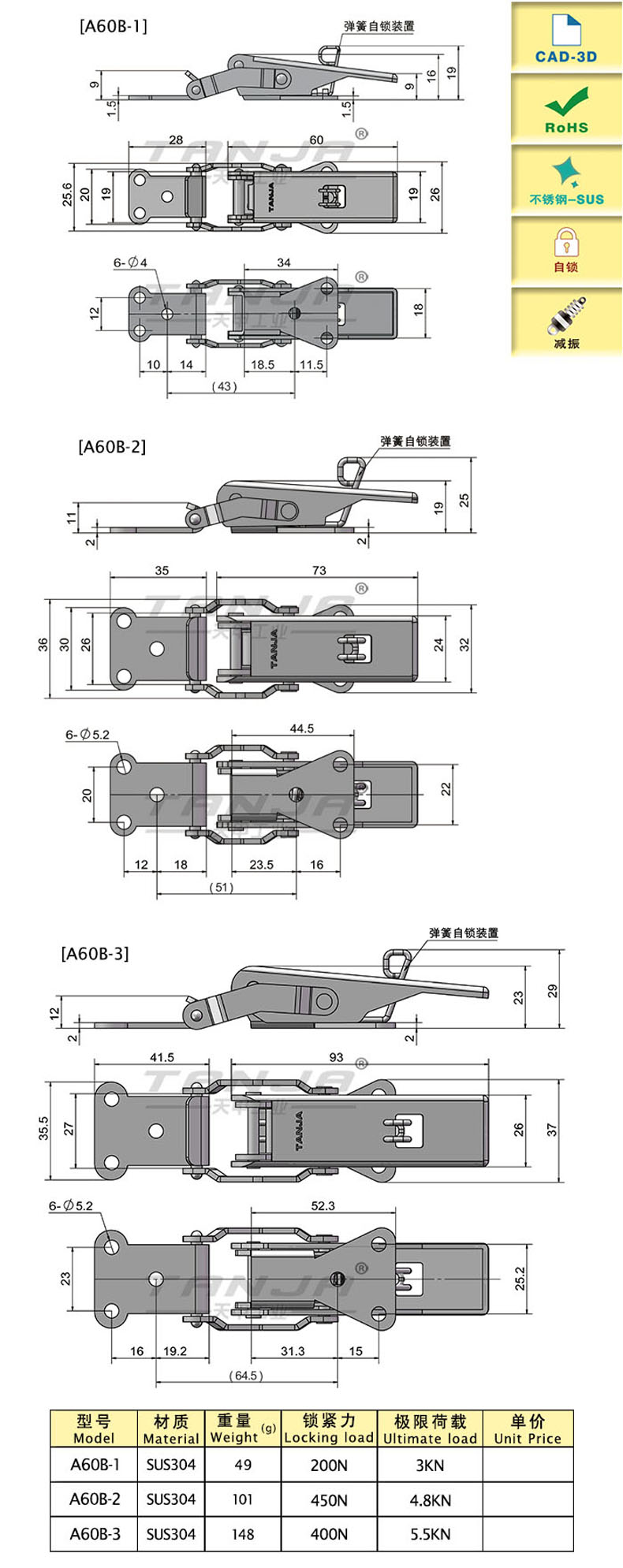 特點:自鎖裝置,防止搭扣意外彈開