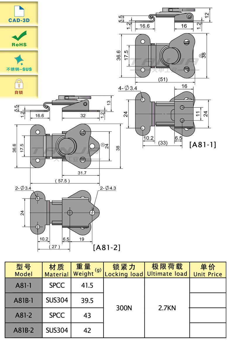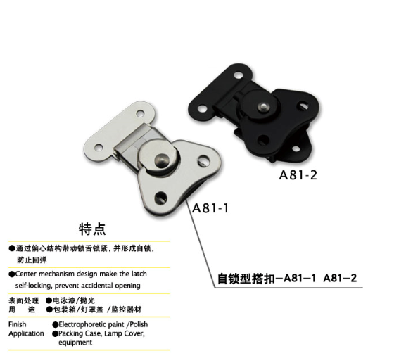 特點:通過偏心結構帶動鎖舌鎖緊,并形成自鎖,防止回彈