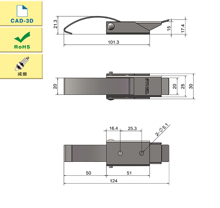 特點:自身的彈性鋼片使搭扣具有預壓減振功能