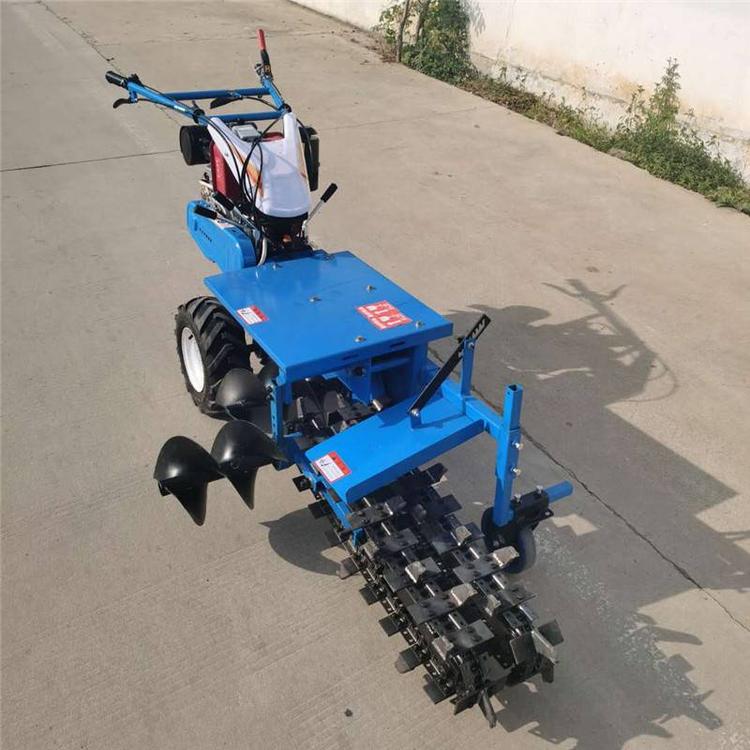 手扶鏈條開溝機(jī)是一種用于土方施工中的開溝機(jī)械,與挖掘機(jī)的功能具有許多相似之處,二者均具有入土(土壤或巖石)、碎土和取土功能,不同之處在于開溝機(jī)能連續(xù)作業(yè),施工效率較高,地表破壞小,特別適合鋪設(shè)管路、電纜,即使在磚石等堅硬的地質(zhì)條件下,開溝機(jī)也能開挖出形狀規(guī)則的溝槽。