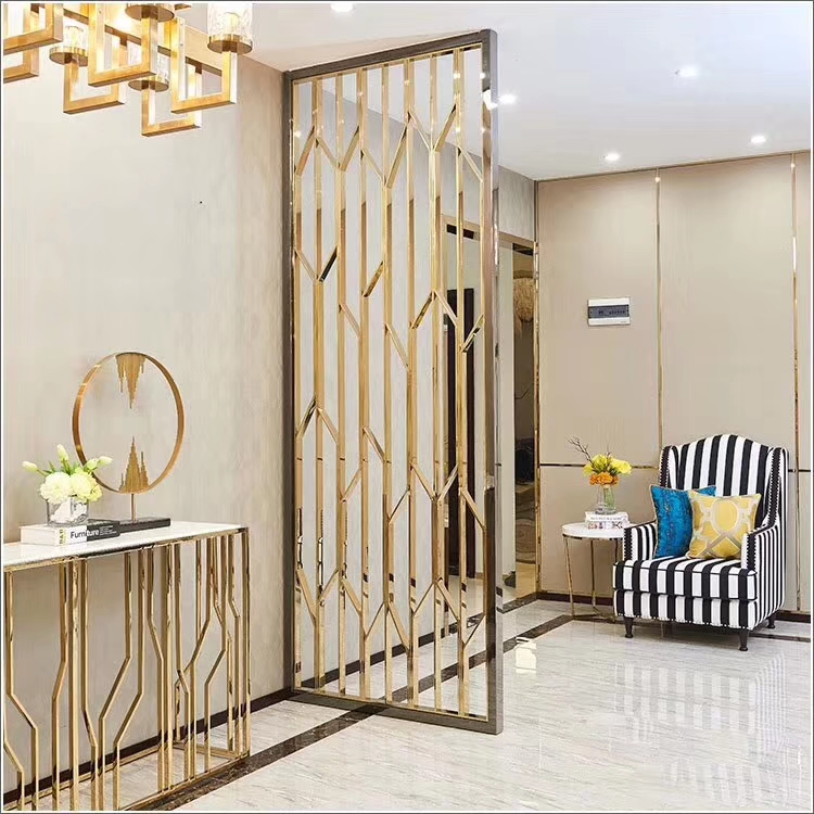 彩色不銹鋼屏風(fēng)最常見(jiàn)顏色有古銅色,玫瑰金色,香檳金,咖啡金,黑色等。