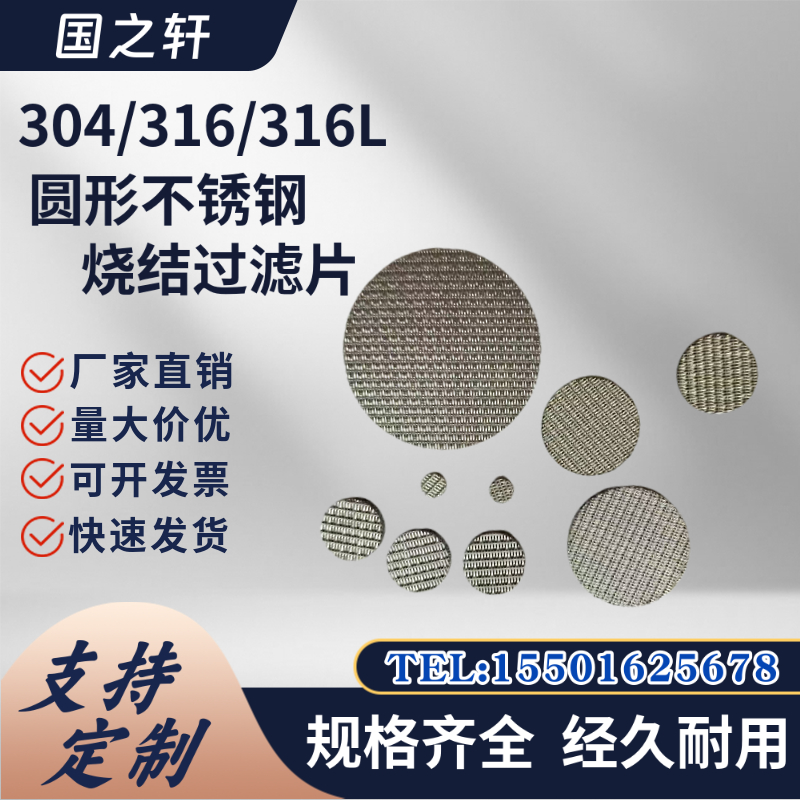 3:支持定制:燒結濾片規格多樣,除現貨尺寸規格外,還可根據妳的使用需求對形狀、直徑大小、網孔目數、厚度、過濾精度等進行定制。