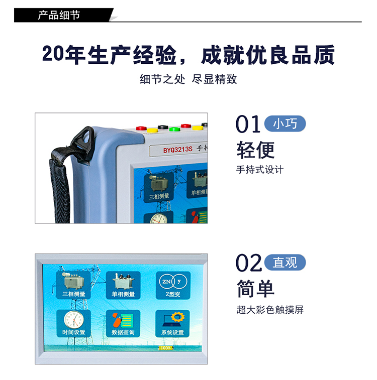 在電力變壓器的半成品、成品生產(chǎn)過(guò)程中,新安裝的變壓器投入運(yùn)行之前及根據(jù)國(guó)家電力部的預(yù)防性試驗(yàn)規(guī)程,要求對(duì)運(yùn)行的變壓器進(jìn)行匝數(shù)比或電壓比測(cè)試,可以檢查變壓器匝數(shù)比的正確性、分接開(kāi)關(guān)的狀況、變壓器是否匝間短路、變壓器是否可以并列運(yùn)行。傳統(tǒng)的變比電橋讀數(shù)不直觀,要進(jìn)行換算,只能逐相進(jìn)行測(cè)量。佐航 BYQ3213S 手持變壓器變比測(cè)試儀克服了傳統(tǒng)變比電橋測(cè)試的缺點(diǎn),操作簡(jiǎn)便直觀,采用三相精密逆變電源,測(cè)試快,準(zhǔn)確度高。
