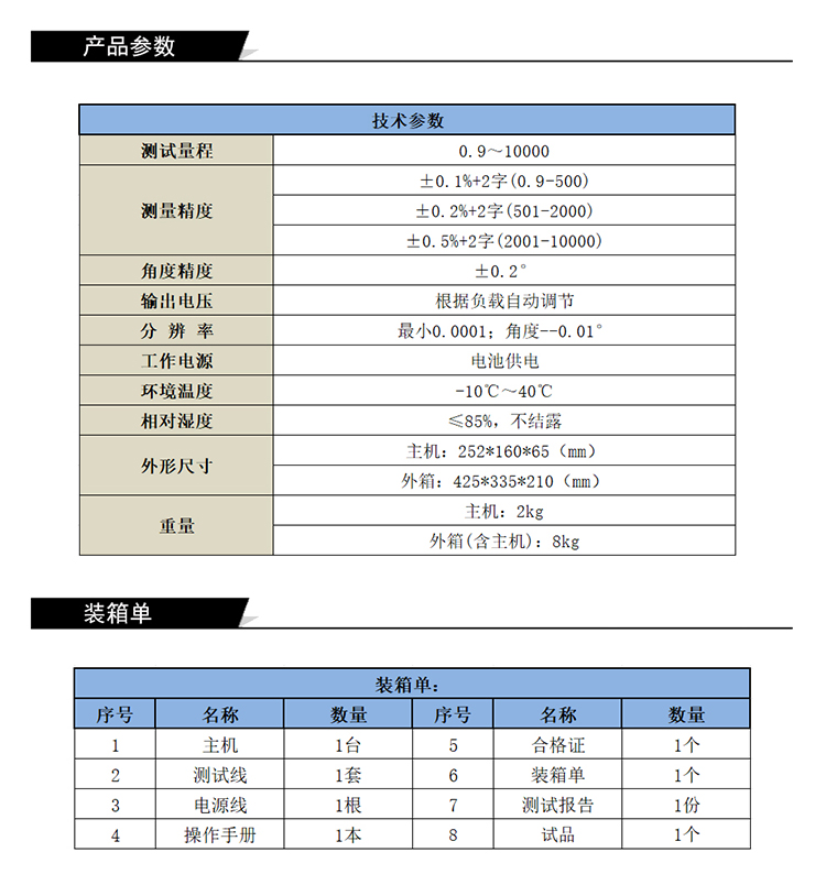 1. 測(cè)試量程:0.9~10000