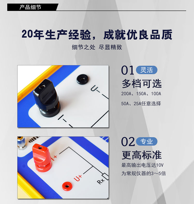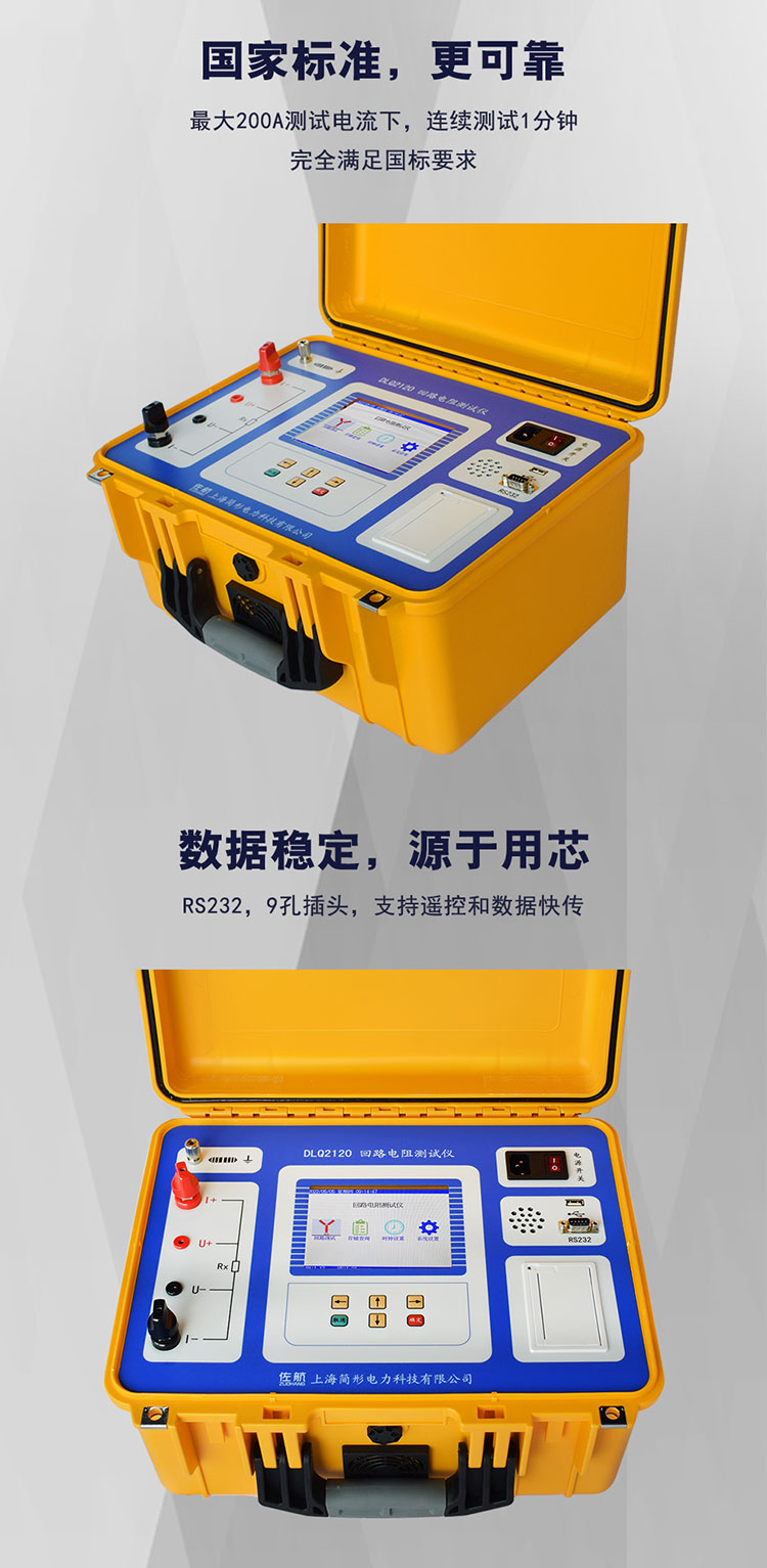 佐航DLQ2120回路電阻測試儀采用200A恒流輸出,zui高輸出電壓為常規(guī)儀器的 3~5倍,可采用截面較細(xì)的測試線,減輕了現(xiàn)場測試人員的勞動(dòng)強(qiáng)度。