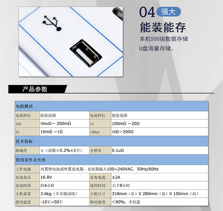 3)量程寬、精度高,500uΩ~200Ω。
