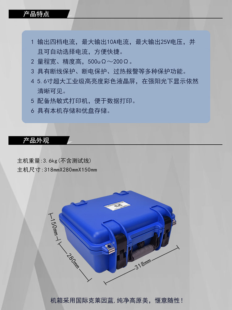 本公司生產的 DDW8110 接地引下線導通測試儀是專門用于接地裝置的電氣完整性測